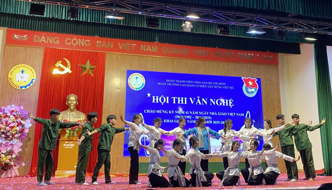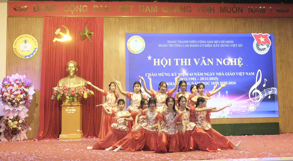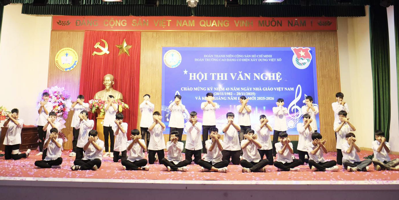 Hướng tới kỷ niệm 43 năm ngày Nhà giáo Việt Nam (20/11/1982-20/11/2025) và khai giảng năm học mới 2025 -2026, bên cạnh phong trào thi đua sôi nổi dạy tốt- học tốt, Hội diễn văn nghệ chính là một trong những hoạt động mang màu sắc truyền thống của trường Cao đẳng Cơ điện Xây dựng Việt Xô trong nhiều năm qua. Đây không chỉ là hoạt động mang ý nghĩa giáo dục cho các em học sinh, sinh viên nhà trường đạo lý “Uống nước nhớ nguồn”, giáo dục tình yêu quê hương đất nước, tình cảm thầy – trò, bè bạn, mà còn là cơ hội để các em phát huy năng khiếu, sở trường, kỹ năng và nâng cao tinh thần đoàn kết tập thể. Đó cũng chính là mục tiêu giáo dục toàn diện mà nhà trường luôn hướng tới.