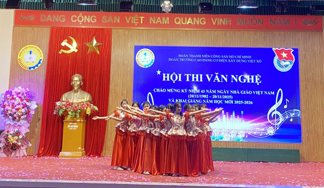 Hội diễn văn nghệ chào mừng kỷ niệm 43 năm ngày Nhà giáo Việt Nam (20/11/1982-20/11/2025) và khai giảng năm học mới 2025 -2026 của Trường Cao đẳng Cơ điện Xây dựng Việt Xô đã khép lại, nhưng những dư âm ngọt ngào và cảm xúc tự hào vẫn còn đọng lại sâu sắc trong lòng mỗi thầy cô, học sinh sinh viên nhà trường. Đây chắc chắn sẽ là nguồn động lực tinh thần to lớn, tiếp thêm nhiệt huyết để tập thể nhà trường tiếp tục nỗ lực, đổi mới sáng tạo và gặt hái thêm nhiều thành tích hơn nữa trong năm học này.